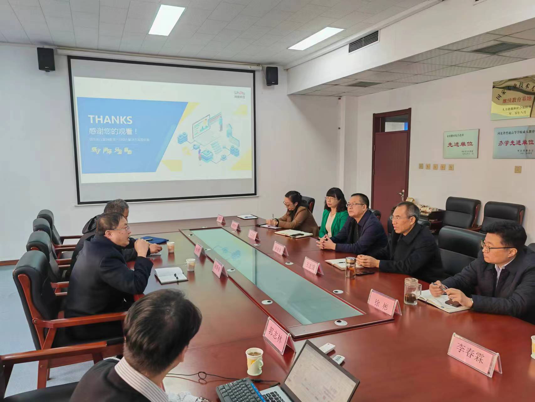 王志国院长首先对唐山市人力资源和社会保障局干部培训教育中心领导来校指导工作表示欢迎,介绍了学校继续教育基本情况,重点介绍了国家级专业技术人员继续教育基地建设,专业技术人员继续教育知识更新工程项目进展,校企合作培训等培训项目开展情况。表示将进一步推进学校与区域经济发展需求紧密结合,拓展培训渠道,提高培训水平,服务地方人才培养。网梯公司代表就非学历教育平台服务专业技术人员继续教育情况进行了介绍。